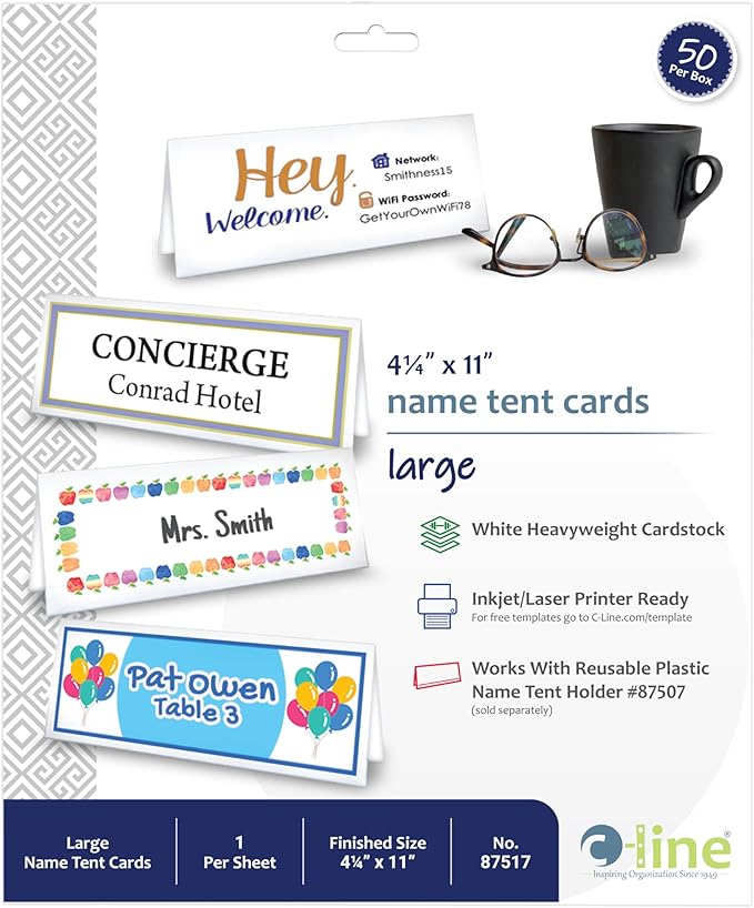 - Works with C-Line Reusable Plastic Name Tent Holder # 87507 (holder sold separately)