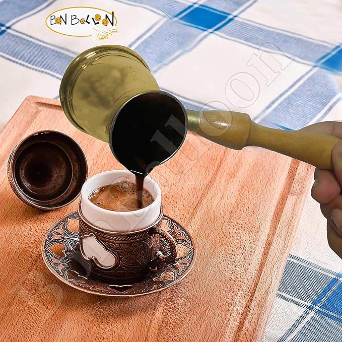 - 1 Brass Copper Pot Ibrik Briki Turkish Greek Coffee Maker Jazva Cezve Jezve Turka Ararat Arabic Arabian Arabic With Wooden Handle Hand Hammered Handmade Egypt Egyptian Decanter Size No2 (2cups) ( 2.70oz /80ml)