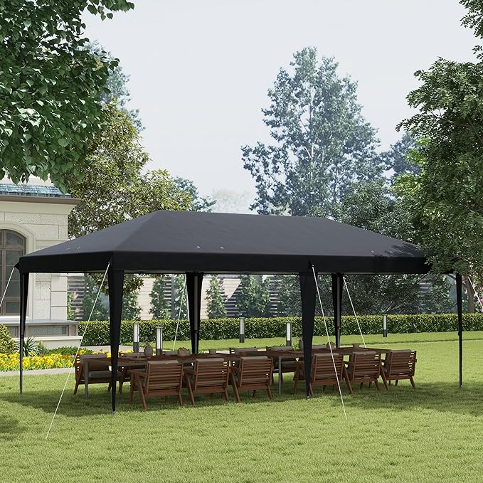 Outsunny 10' x 20' Pop Up Canopy Tent, Upgraded Heavy Duty Tents for Parties, Outdoor Instant Gazebo Sun Shade Shelter with Carry Bag, for Catering, Events, Wedding, Backyard BBQ, Black
