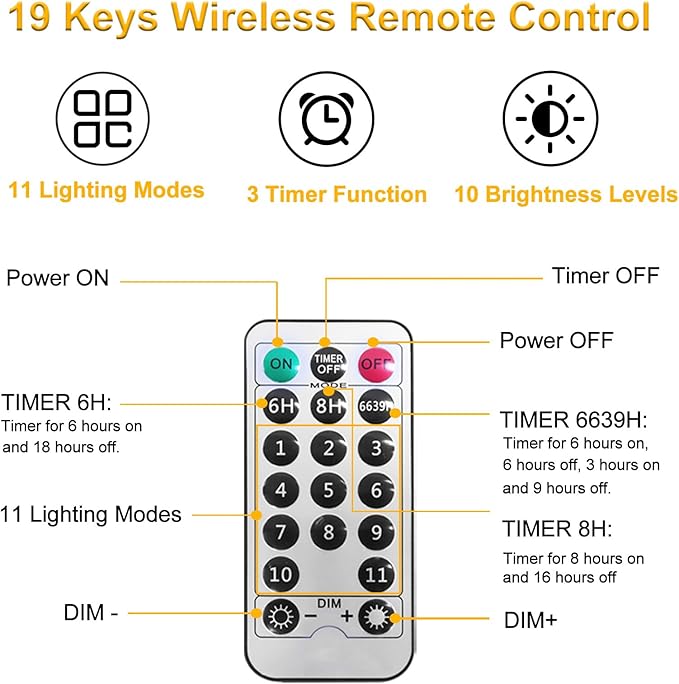 - Dimmable & Timer Function: 4-Level brightness adjustment: 25% -50% -75%-100%. The timer can be set to turn on 6H/ 8H/ 6639H. The memory function will remember your last choice and does not need to be reset