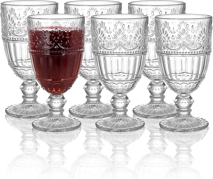 - Exquisite Design: Decorated with beautiful flower embossed designs makes these drinking stemware glass goblets unique and charming for any event any occasions. These stylish goblets will amaze your guests with its vintage elegant style.