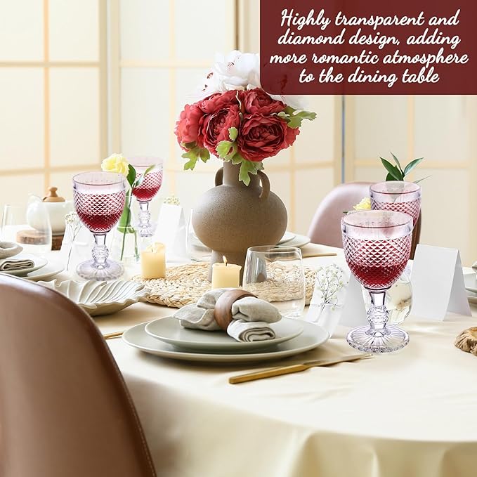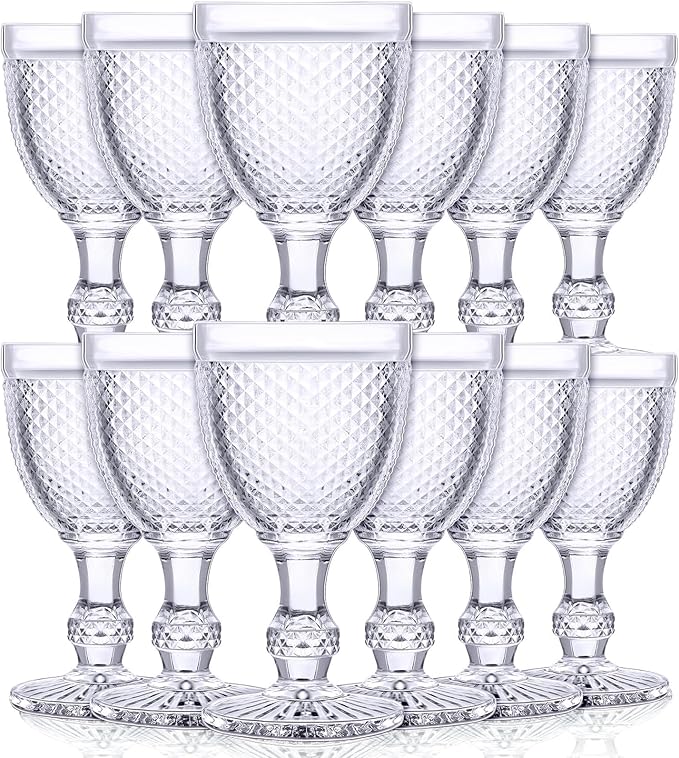 - 12 Pieces Set: the set contains 12 pieces of red wine goblets with diamond design and reliable quality, and with a capacity of approx. 10 oz; Classic goblet design makes it suitable for most formal and stylish activities, such as weddings, dinners, parties and other major events or occasions; Note: Hand wash only, not dishwasher safe