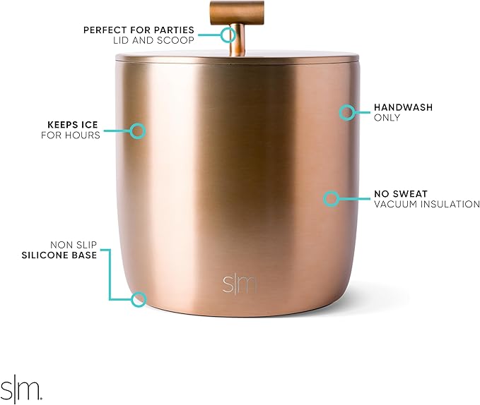 Simple Modern Vacuum Insulated Ice Bucket with Lid and Scoop | For Cocktail, Champagne, Wine, Beer, & Hosting | Stainless Steel 100oz Capacity for Large Parties | Rocks Collection | Metallic Gold