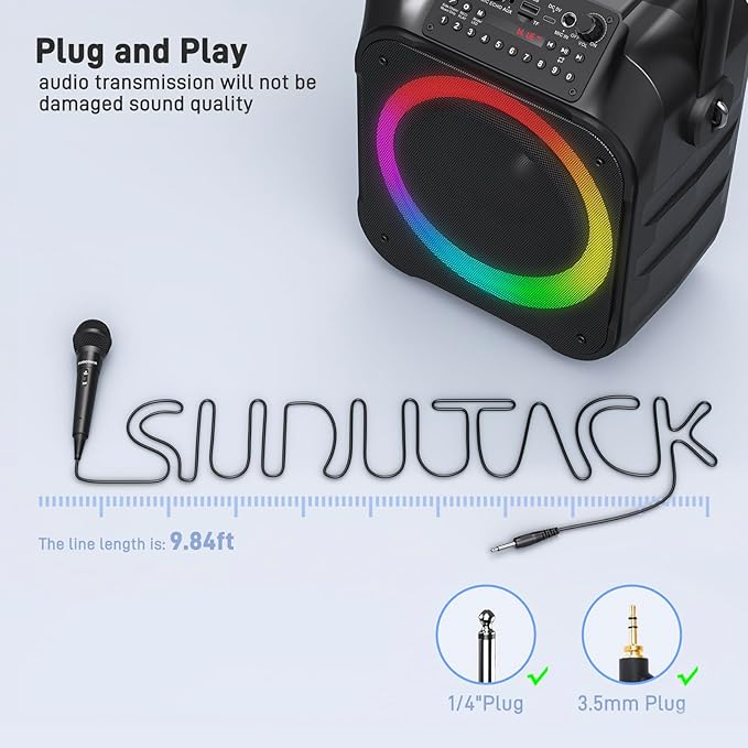 - Premium Quality Sound: SUDOTACK wired singing microphone equipped with cardioid pick-up pattern, it delivers crystal-clear vocals, reproduce your pristine voice while reducing the background bothersome sound, perfect for karaoke enthusiasts and live performers.