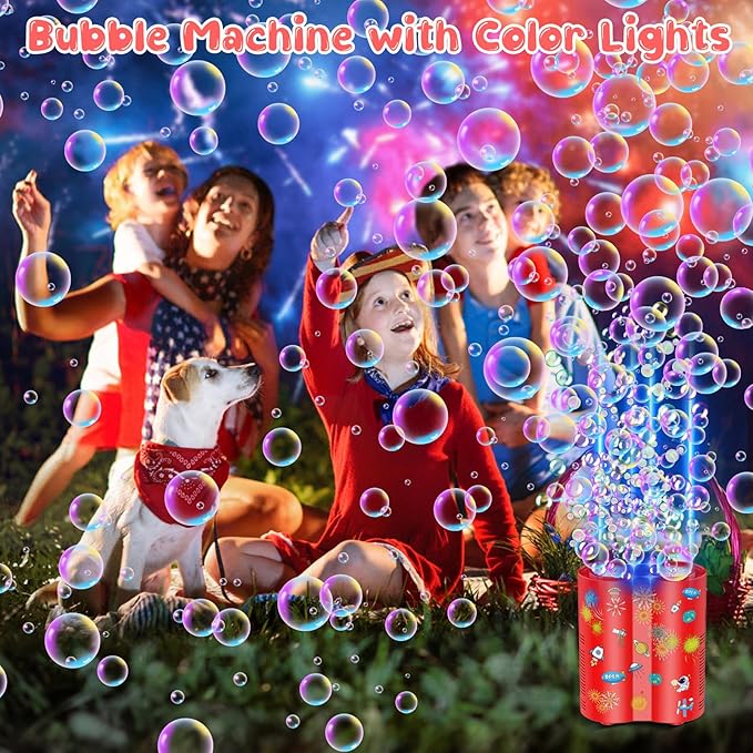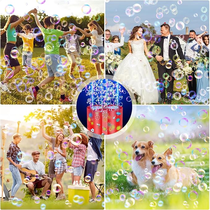 - [Outdoor Bubble Toys for any Occasion] The portable bubble machine is an essential atmosphere maker for outdoor events birthday party wedding patio garden camping pool game Christmas New Year festival celebrations, also a awesome gift for kids to have fun all the year. OK, get a fireworks bubble machine to bring you a unique surprise.