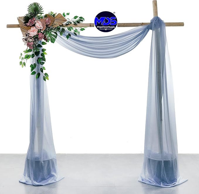 MDS Pack of 1 Wedding Arch Drape Panel (30" Width x 75ft Long) Sheer Chiffon Arbor Canopy Drapery Fabric for Wedding Ceremony Reception Decoration Party Ceiling Backdrop Curtain Swag - Dusty Blue