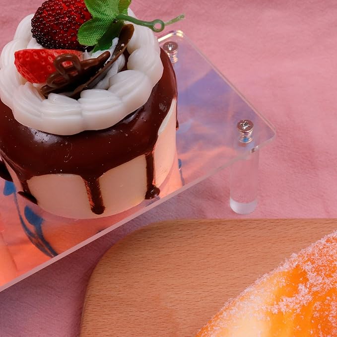 MY MIRONEY 2PCS Acrylic Display Stand Iridescent Display Shelf Figurines Organizer Cupcakes Holder for Cake Food Desserts Figurines Collectibles Perfume Jewelry Makeup(7.87" x 2.95" x 1.97")