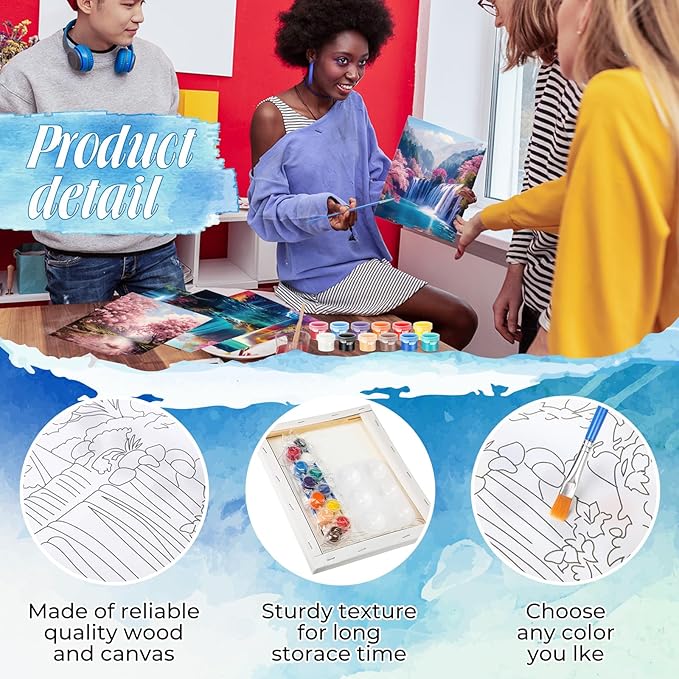 - Different Styles: our drawn canvas offer a variety of 12 different realistic landscape themed styles to choose from; This design can make sure there's a style that fits your taste and preference; Whether you're a beginner, a paint and sip going enthusiast, or an expert painter, our painting canvases with pictures to paint will help you craft stunning artworks effortlessly; Get ready to dive into the world of colors and creativity with our pre drawn canvas paint kit