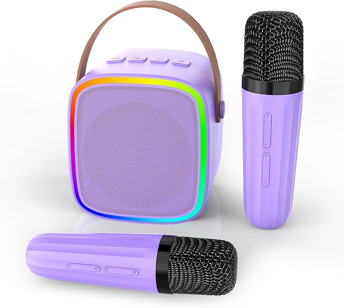 Mini Karaoke Machine with 2 Wireless Microphones, Kids Toys Portable Bluetooth Speaker for Kids Adults Toddler, Christmas Girls Toys for 4 5 6 7 8 9 10 12 Year Old Birthday Gift Ideas (Purple)