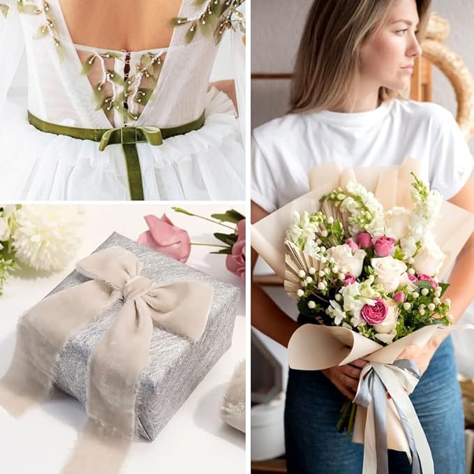 - 【No Color Difference Velvet Ribbon】Well made, soft and strong toughness. Perfect for gift wrapping, wedding invitations, headbands, sewing, home decor, DIY decor, gift card holder, ribbon bow, handmade craft project etc.