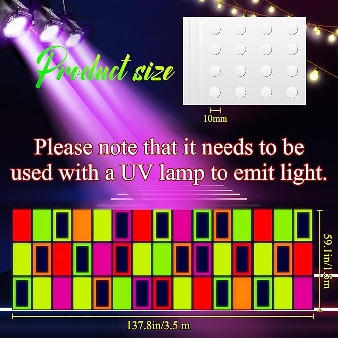 - Wide Application: the neon blacklight rug may be utilized in a variety of situations, including the neon theme party, party dance floor decorations, vintage 80s themed party, birthday party, glow in the dark themed party, carnivals, and stage performances, illuminating the night and dancing