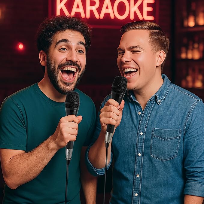 - Dual Mics for Clear Vocals & Noise Isolation This 2-pack of professional wired dynamic karaoke microphones features cardioid pickup patterns that isolate vocals and reduce background noise. Ideal for duets, podcast co-hosts, karaoke nights, or backup mics on stage.