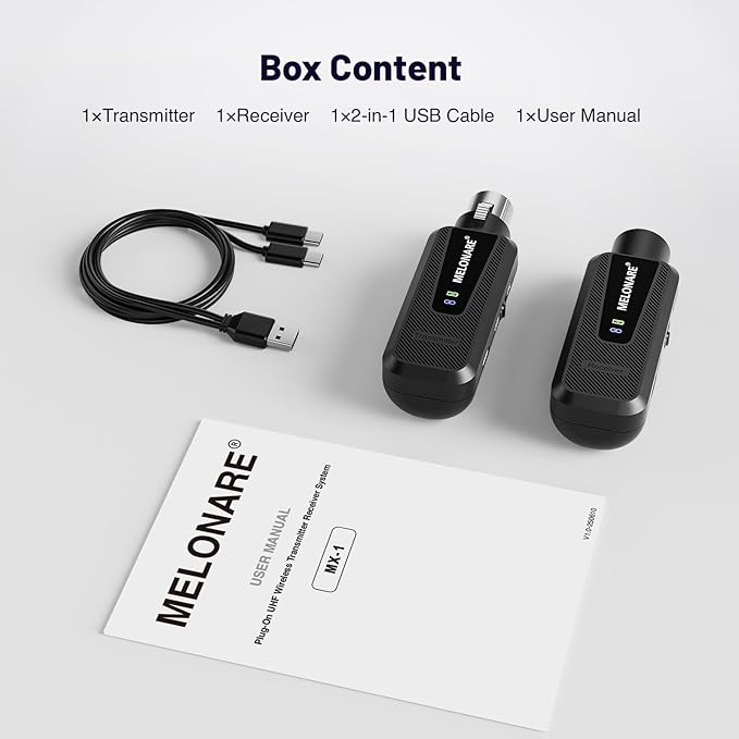 - 164FT WIRELESS FREEDOM: This XLR transmitter and receiver is perfect for XLR interface equipment, including wired mics, audio mixers, and speakers. Say goodbye to cable clutter on stage or in the studio. Operating on a 900MHz UHF frequency, it avoids interference from crowded 2.4GHz and 500MHz bands, ensuring more stable performance. With 10 selectable frequencies and up to 164ft of transmission range, it delivers wireless convenience anytime