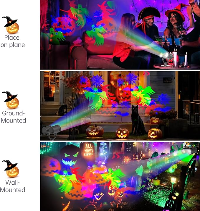 - Versatile Use: Dynamic christmas lights outdoor projector are perfect for indoor and outdoor christmas light show ceiling, yard, bedroom, walls, exterior surfaces, etc. Upgraded LED light source with definition ensures sharp, blur-free pattern edges. Featuring ghosts, blue spiders, infusing every detail with spine-chilling horror to create eerie halloween projector hologram. Christmas projection lights perfect choice for home, halloween, gatherings, and festive decorations