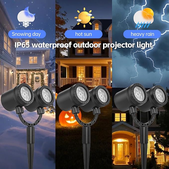 - Dual-Head Design & IP44 Waterproof Rating: SZGIARUY christmas projector lights outdoor features a dual-head design to expand projection coverage. Christmas projectors supports projection distances from 10 to 25 feet ideal for close range indoor wall projections to build terror or long-range outdoor courtyard coverage for large-scale spooky scenes. Christmas outdoor projector is waterproof, you can place it outdoors without worrying about moisture damage