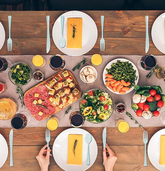 - Clear silverware disposable: The disposable silverware is made of plastic that are not easy to break. The light green disposable clear cutlery add a touch of beauty to the any dining environment, whether hosting a casual gathering or a formal dinner party
