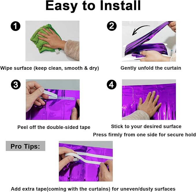 - Thicker 36μm PET Construction: Our foil fringe curtains/streamer outperform standard 16μm/23μm options: thicker, heavier (103g vs. typical 52g/75g), brighter, and smoother, with exceptional rip resistance (no more easy rips!) and a dramatic drape upgrade. Measuring 3.28ft x 6.56ft (1m x 2m), this durable, luxuriously hanging backdrop is long enough and perfect for birthdays, parties, and all celebration decor needs!
